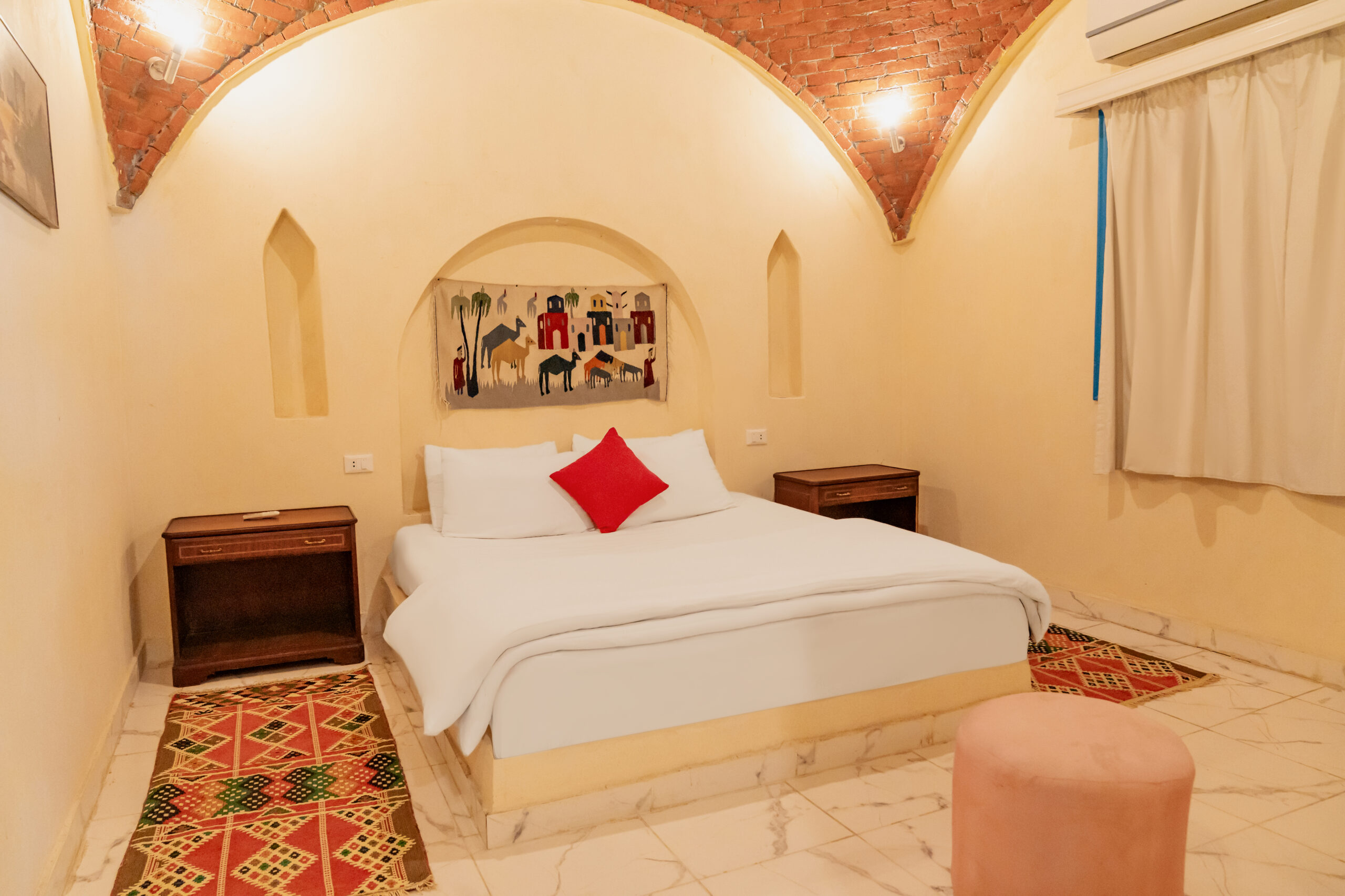 Choose between a king-size bed or twin beds, subject to availability. The suite features air conditioning and a private bathroom to ensure a comfortable stay throughout the year.